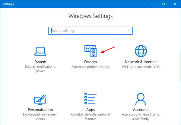 - 当“设置”应用程序启动时,单击设备。