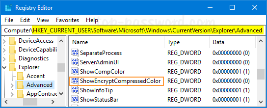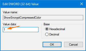 - 关闭注册表编辑器。 Windows 10 使文件名变得丰富多彩,以帮助您轻松识别加密或压缩的文件和文件夹。