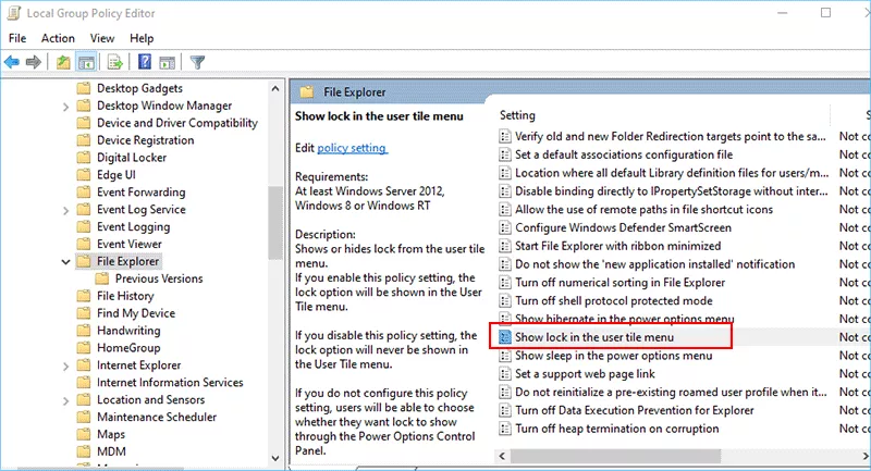 方法 2:通过本地组策略编辑器显示或隐藏锁定选项