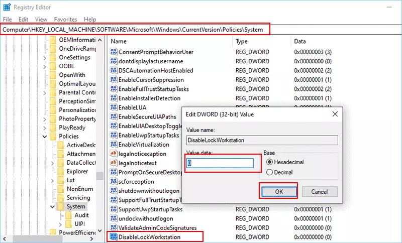 HKEY_LOCAL_MACHINE\SOFTWARE\Microsoft\Windows\CurrentVersion\Policies\System