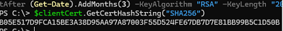 $clientCert = New-SelfSignedCertificate -DnsName mfs01.woshub.com -CertStoreLocation "Cert:\LocalMachine\My" -NotAfter (Get-Date).AddMonths(3) -KeyAlgorithm "RSA" -KeyLength "2048"