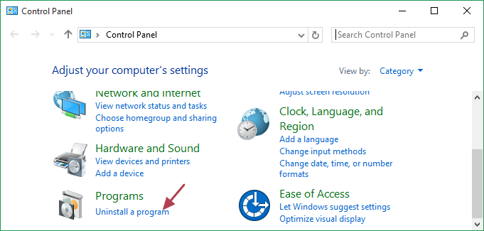 步骤 2:访问控制面板并单击卸载程序程序下的选项。