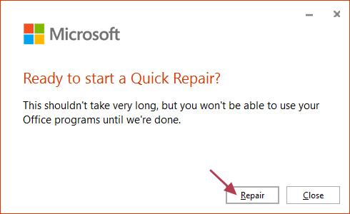 步骤 4:在 Microsoft 窗口的右下角,点击维修按钮来修复 Office 程序。