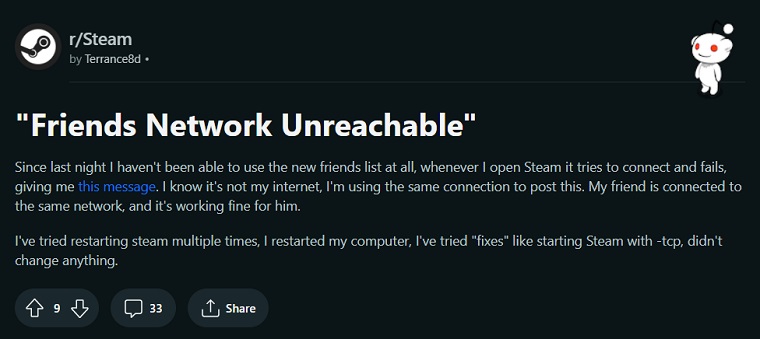 蒸汽用户拥有朋友和聊天具有相互沟通的功能。此外,此功能还控制您是否可以在在线模式下玩游戏。您还可以邀请您的朋友加入您。然而,许多 Steam 用户表示面临着臭名昭著的问题好友网络无法访问问题。由于这个问题,用户面临着极大的限制,因为 Steam 上的大多数功能在以下情况下都会停止工作:Steam 好友网络未连接。