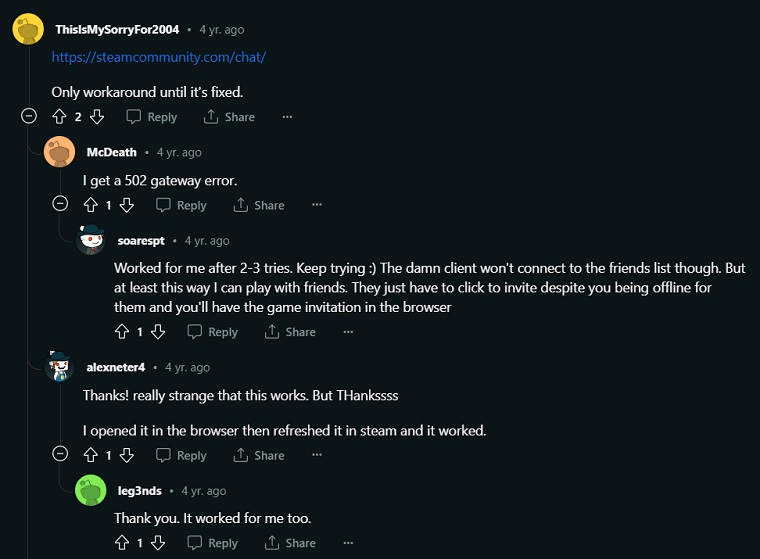 Reddit 上的许多用户表示,在浏览器中使用 Steam Chat 是使用 Steam Chat 的可靠替代方案。蒸汽的内置好友和聊天功能。用户还报告说,在浏览器中打开 Steam Chat 后会重新启动蒸汽修复了内的问题蒸汽应用程序。为此,只需访问Steam Chat 官方网站并登录以继续。