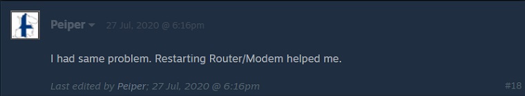 Steam 社区和 Reddit 上的用户报告说,重新启动路由器并重新插入以太网电缆解决了该问题Steam好友网络无法访问对他们来说问题。