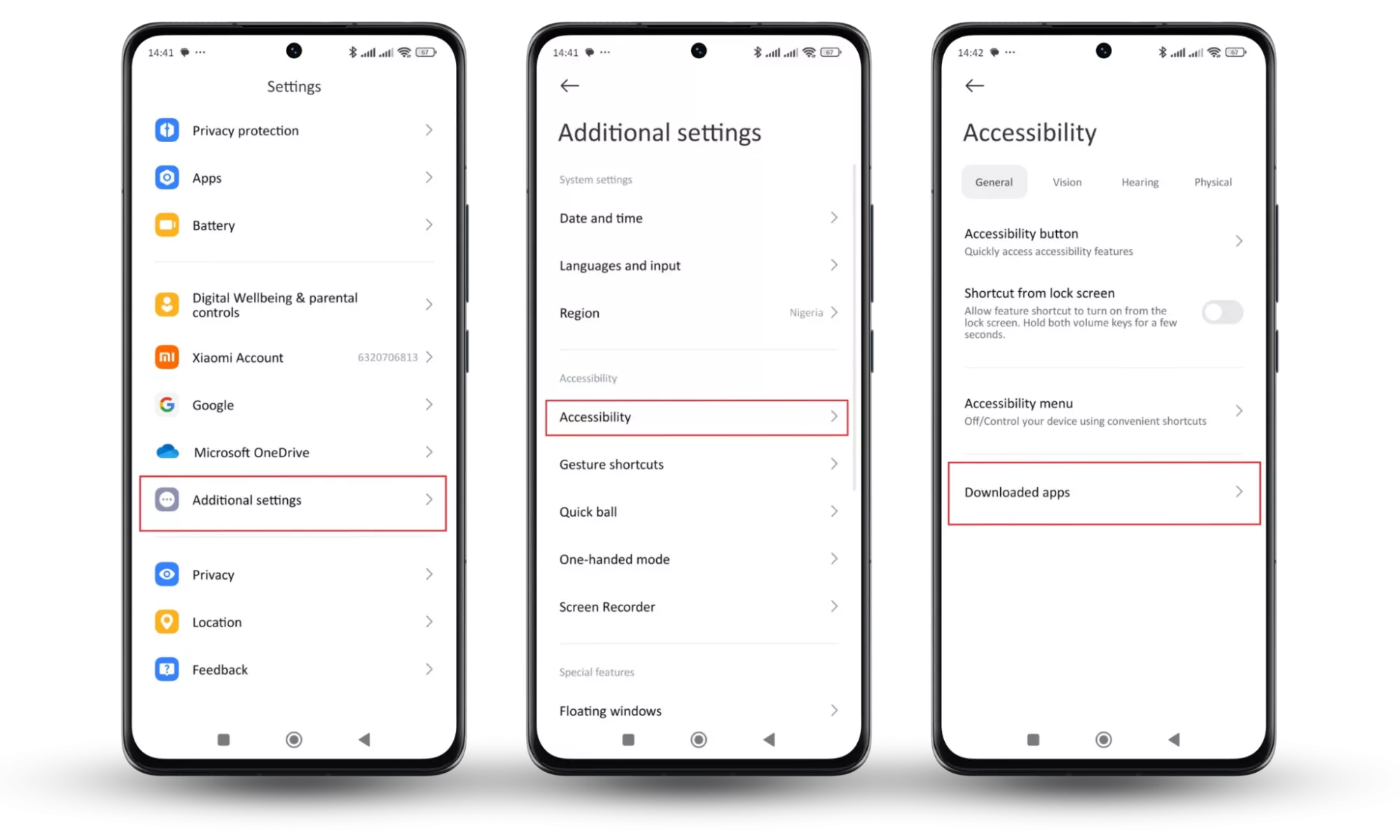 步骤 1-4:打开设置 > 其他设置 > 辅助功能 > 下载的应用程序 > 查看列表。