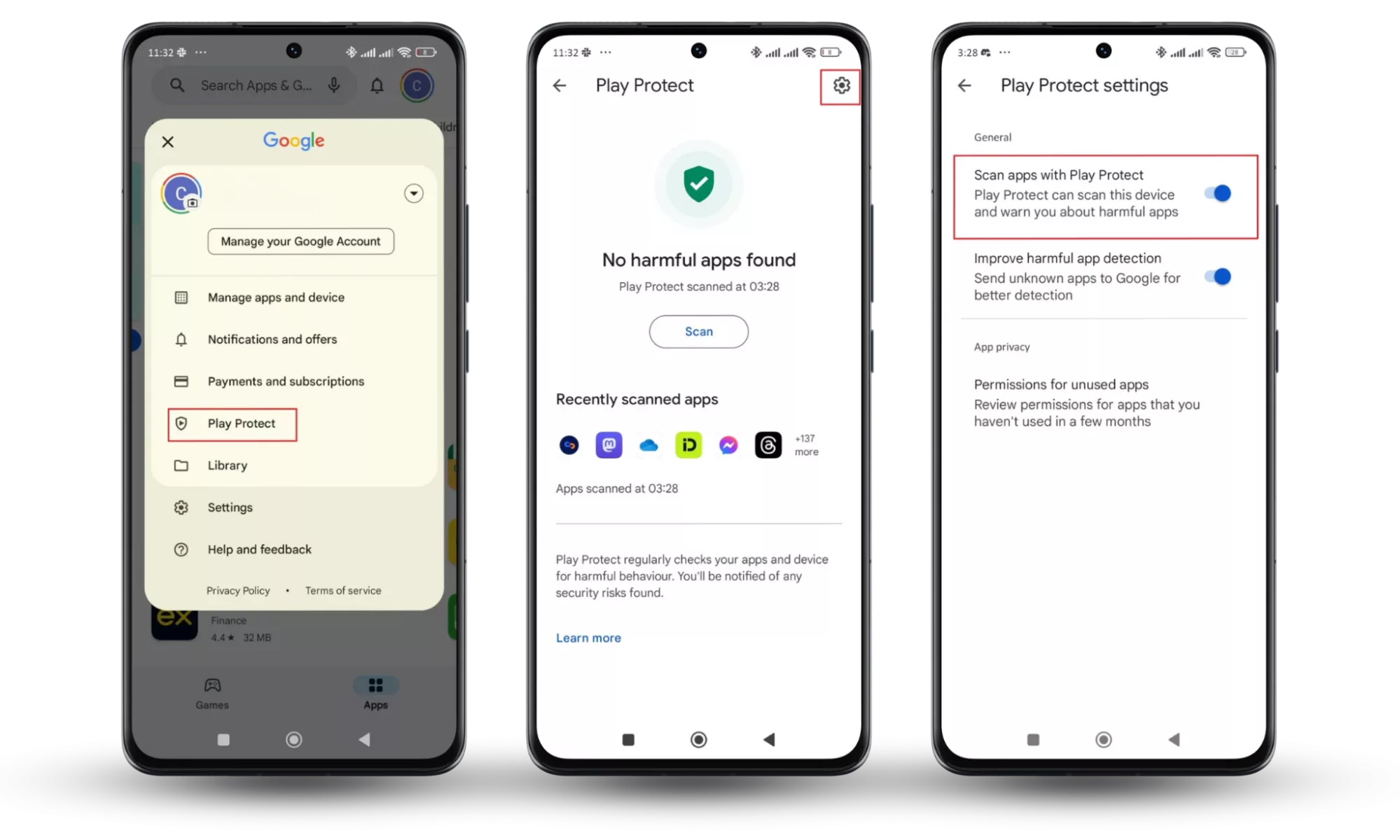Google Play Protect 将扫描您的应用程序,并在发现任何可疑应用程序时通知您。