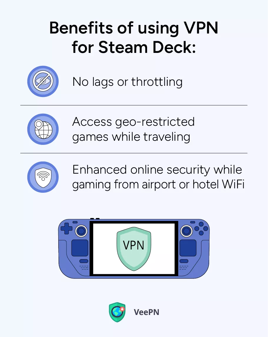 VeePN 是将您的 Steam Deck 游戏隐私提升到新水平的完美解决方案。让我们深入探讨如何做到这一点!