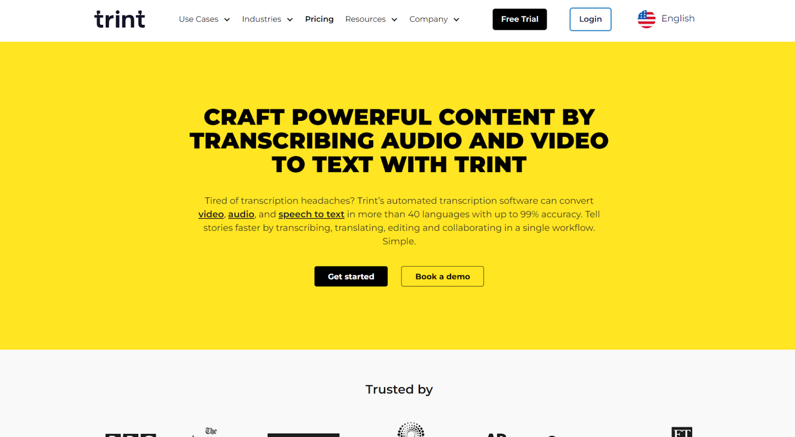 Trint 专为需要强大转录和内容管理功能的用户而设计。它提供实时转录、协作编辑以及与视频编辑软件的轻松集成。 Trint 在需要快速将音频和视频转化为精美内容的记者和内容创作者中特别受欢迎。