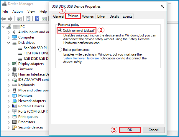 为了在Windows 10上安全地删除USB,实际上您可以启用以下功能快速移除在您的 Windows 计算机上,这是一项 Windows 服务,可格式化您的闪存驱动器以实现无弹出删除,以便您在使用完毕后可以轻松拔出闪存驱动器。