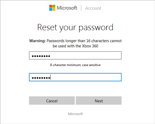 4. 接收安全码并使用它重置 Microsoft 帐户密码。
