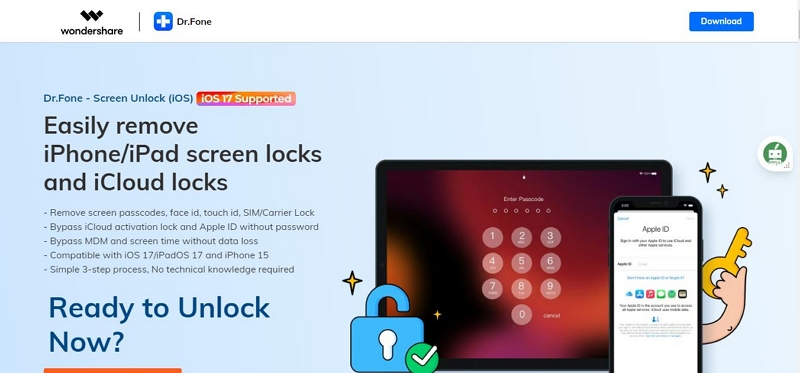 使用 Dr.Fone – 屏幕解锁 (iOS),您可以绕过 MDM 和屏幕时间限制,而不会丢失任何数据,最棒的是它与所有 iOS 版本兼容,包括最新的 iOS 17/iPadOS 17 和 iPhone 15。