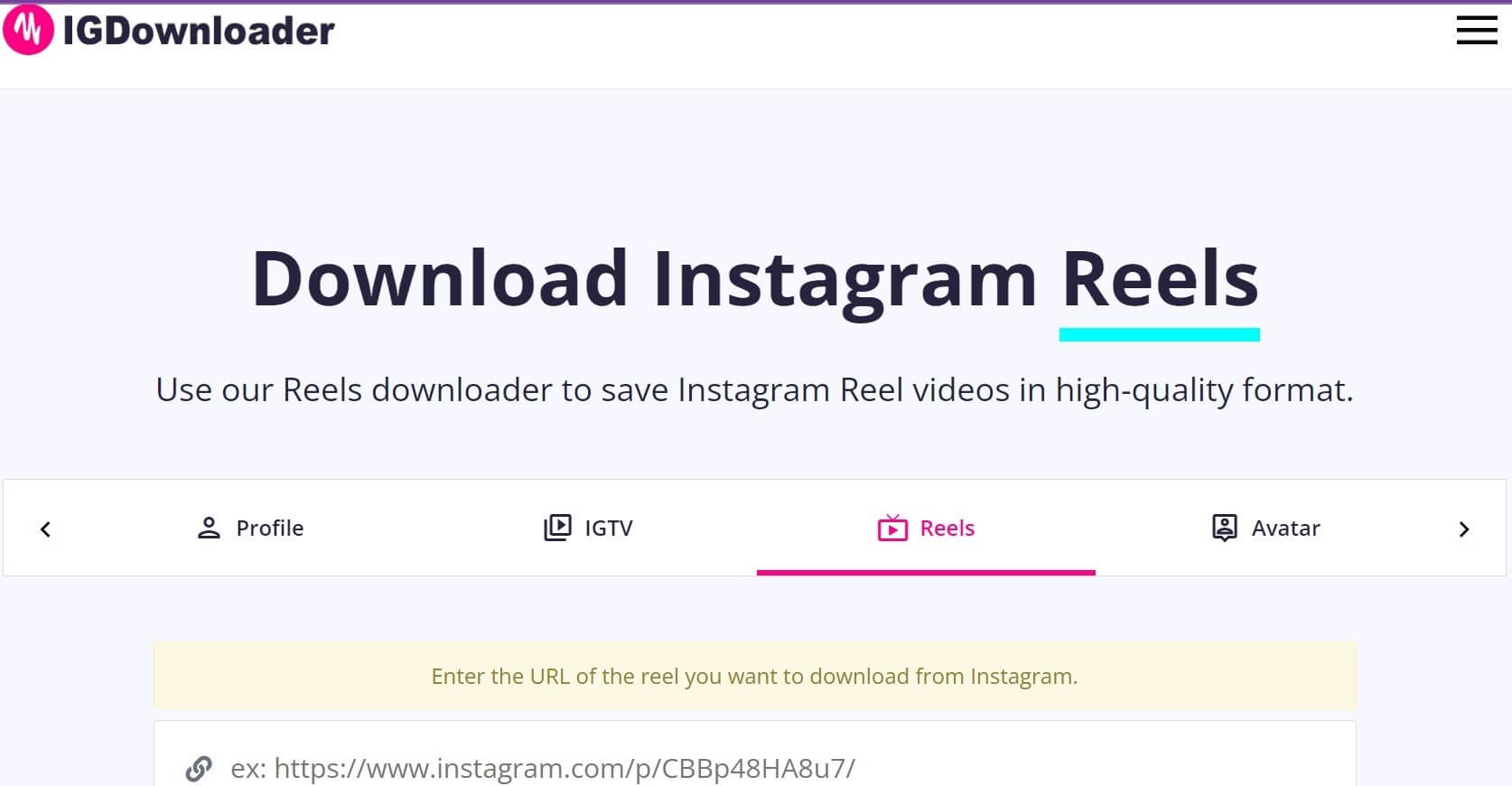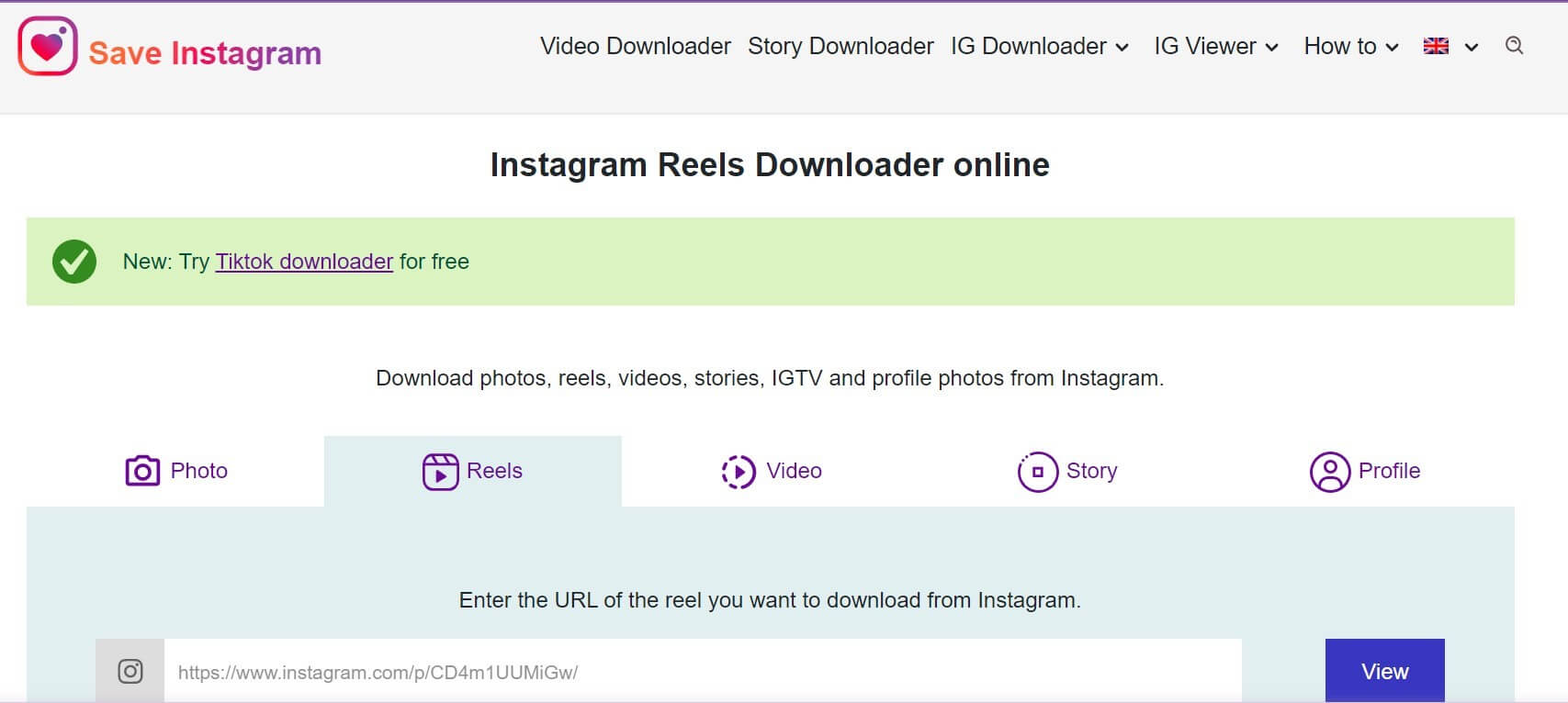 这是另一个简单且用户友好的 Reels 下载器网站,非常适合快速处理 Instagram 视频下载,尤其是涉及 Reels 时。其视觉上令人愉悦的界面增加了整体易用性,使体验更加愉快。