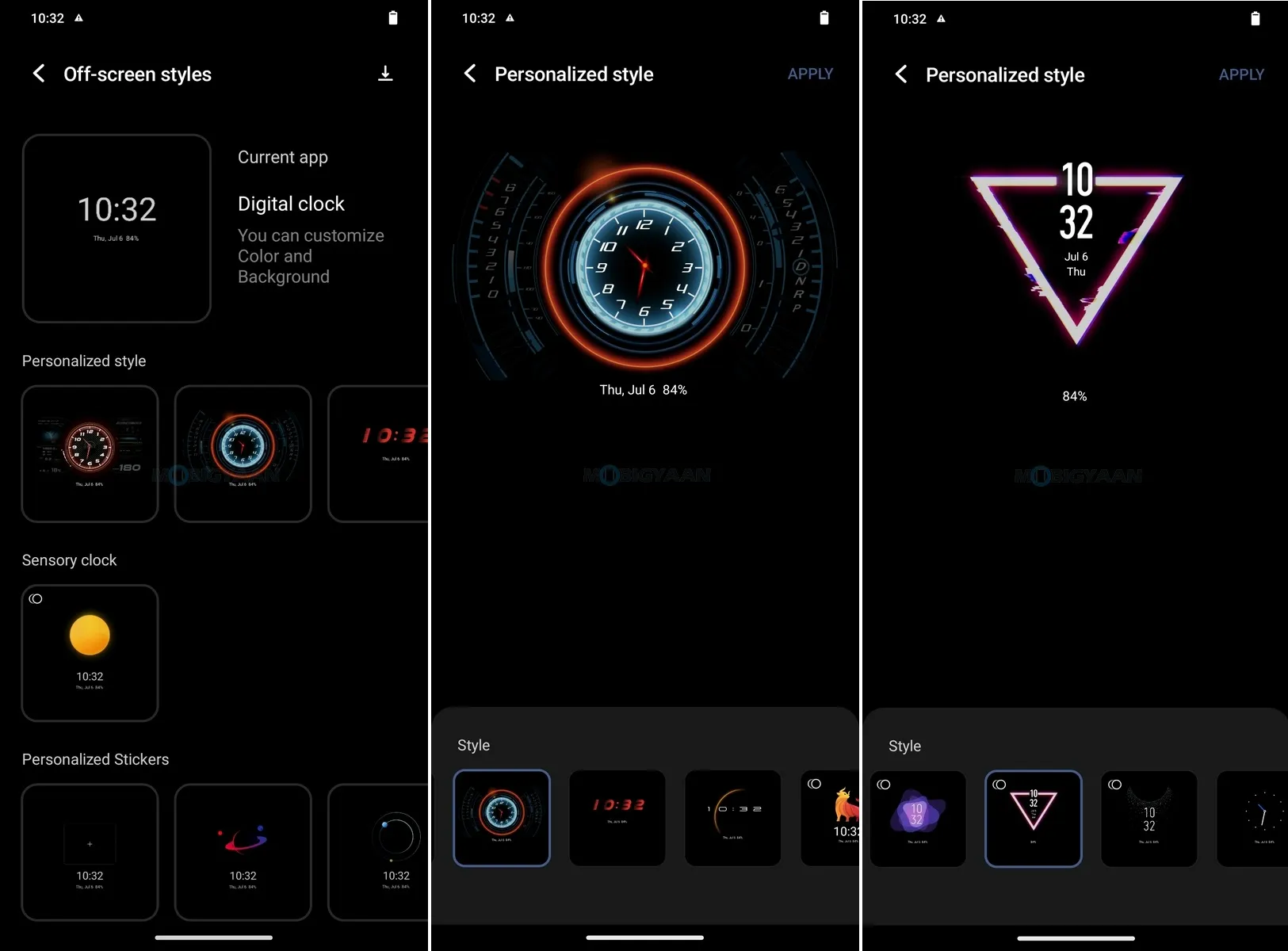 Vivo T2 Pro 5G 采用 120 Hz AMOLED 显示屏,借助 AMOLED,您可以获得 FunTouch OS 13 中内置的“始终显示”功能,让您可以一目了然地查看日历、时钟、通知、通话、短信、电子邮件等。如果您不使用它,请访问设置 -> 锁屏和壁纸 -> 始终显示并打开滑块。就在其下方,您可以点击离屏样式要自定义“始终显示”,请查看其中提供的样式。选择您喜欢的一项,并根据您的需求保持始终显示的个性化。