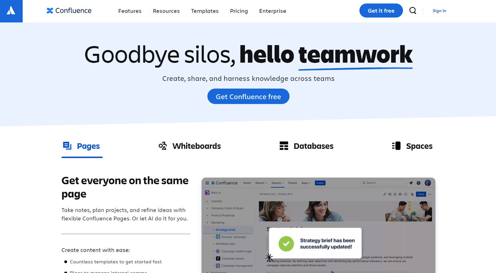 - 多功能内容创建:使用灵活的 Confluence 页面创建白板、数据库和视频等动态内容,帮助团队将想法变为现实,而无需上下文切换。