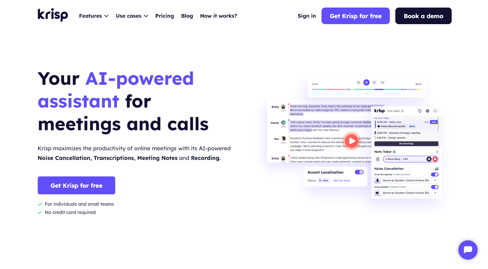 Krisp 非常适合希望改进在线会议并确保准确捕获所有关键点的个人、自由职业者和团队。