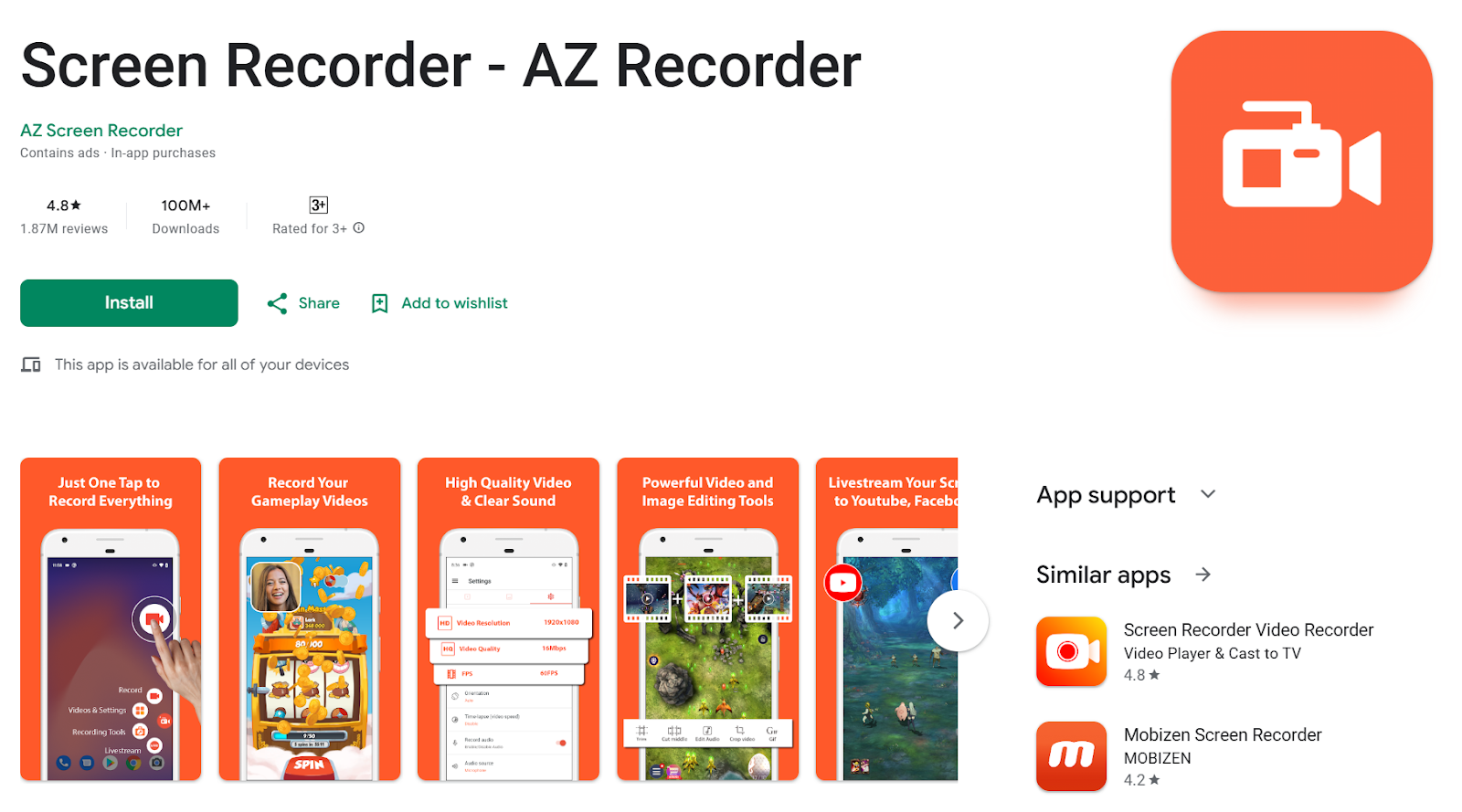 - 启动 AZ Screen Recorder 并在播放视频之前点击录制按钮。