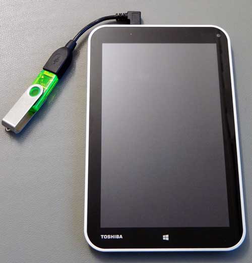 创建可启动媒体后,您需要启动它。因此,将 USB-OTG 电缆连接到 Toshiba Encore 平板电脑并插入可启动媒体。