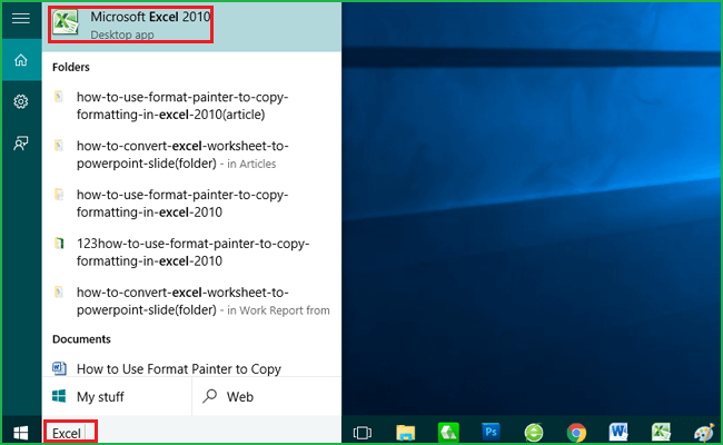 按视窗键盘上的图标,输入“Excel”进入搜索栏,然后单击 Microsoft Excel 2010 图标以打开 Excel 工作簿。如果需要,请再次执行这些步骤以打开多个 Excel 实例。