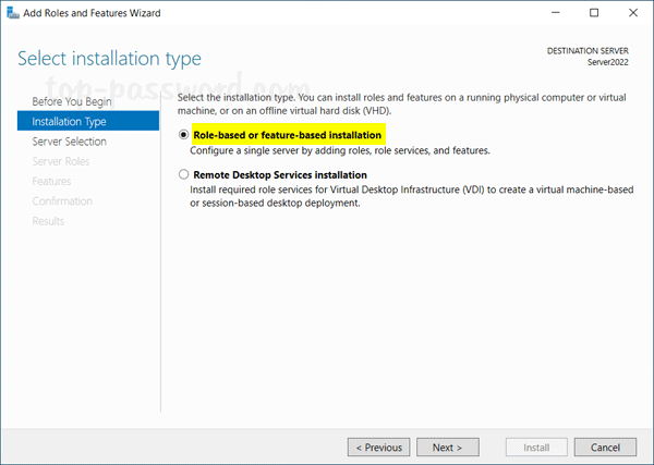 - 选择“基于角色或基于功能的安装” 输入,单击下一个。