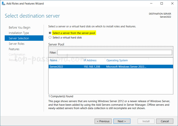 - 选择将安装 Active Directory 角色的本地服务器,然后单击下一个。