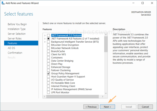 - 在“功能”页面上,已默认选择所需角色的基本功能。只需点击下一个。