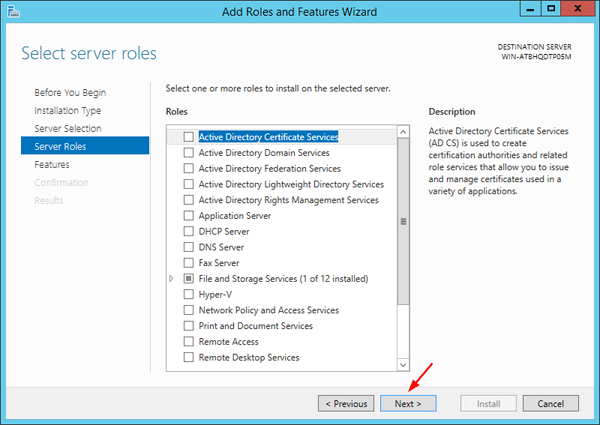- 在服务器角色页面上,选中“活动目录域服务” 列表中的角色。