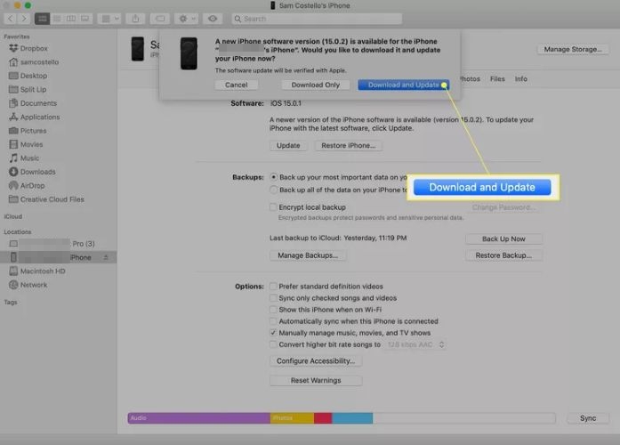 iTunes 或 Finder 还可以让您更新 iOS。当它们通过您的计算机连接到 Apple 的服务器时,它们可以避免手机上的故障。