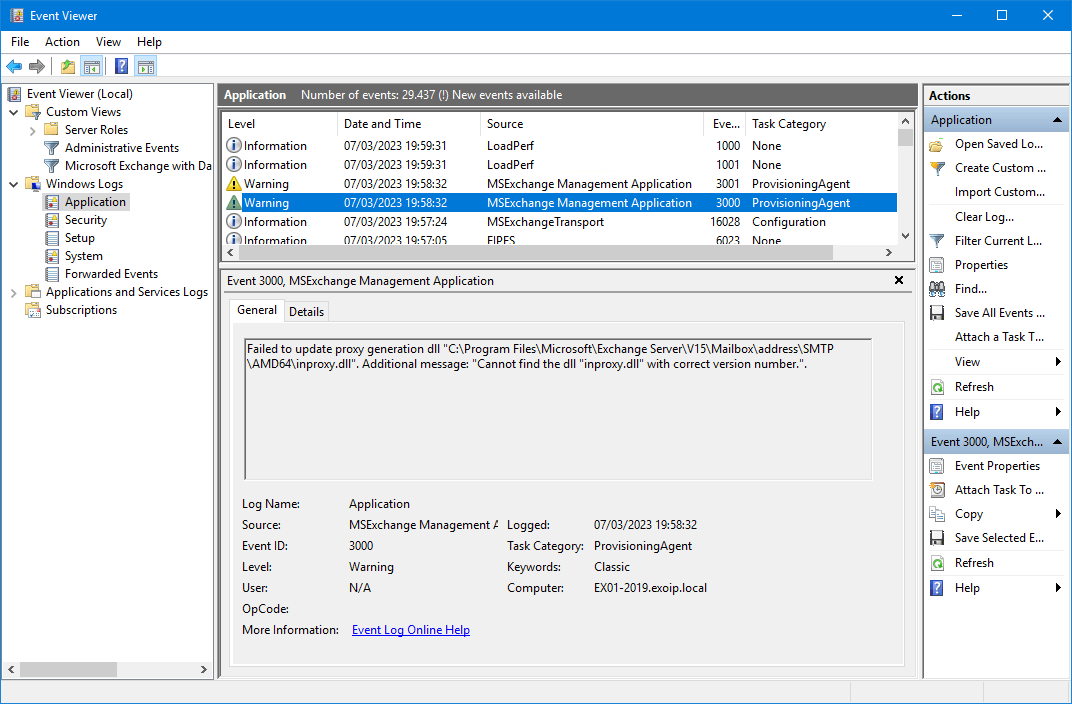 Failed to update proxy generation dll "C:Program FilesMicrosoftExchange ServerV15MailboxaddressSMTPAMD64inproxy.dll". Additional message: "Cannot find the dll "inproxy.dll" with correct version number.".