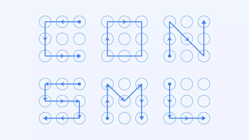 3.常见的图案锁。例如,“L”、“Z”、“P”、“U”。