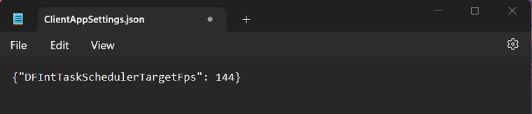 第4步:改变“60”在{"DFIntTaskSchedulerTargetFps": 60}无论您想要的目标 FPS 是什么。在我们的例子中,我们的目标是 144 FPS,所以我们将其更改为{"DFIntTaskSchedulerTargetFps": 144}。