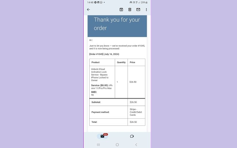 步骤 5。付款后,您将在网站上看到订单确认信息。您还会收到一封电子邮件,其中包含您的订单详细信息和 ID。