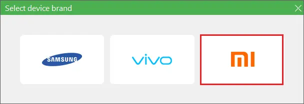 使用USB线将小米手机连接至电脑,然后点击“小米”弹出品牌列表中的图标。
