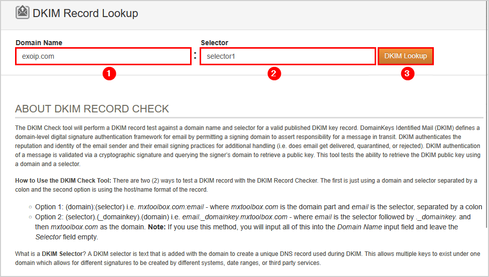 在线有许多工具,您可以填写域并扫描DKIM选择器。但是,这不是正确的方法,因为他们只查找最受欢迎的选择器。