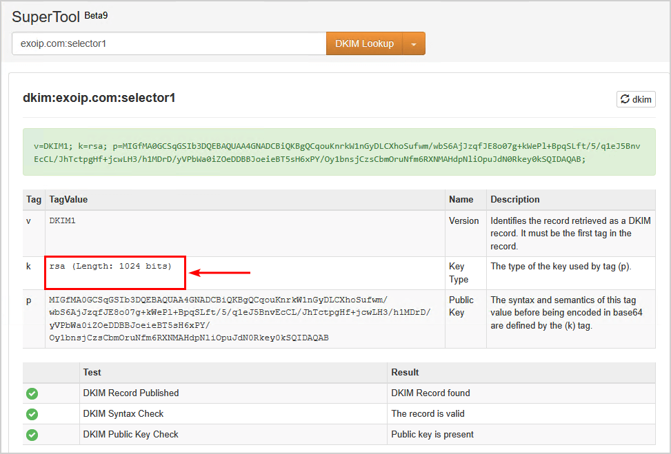 在此示例中,选择器1具有1024位dkim键。