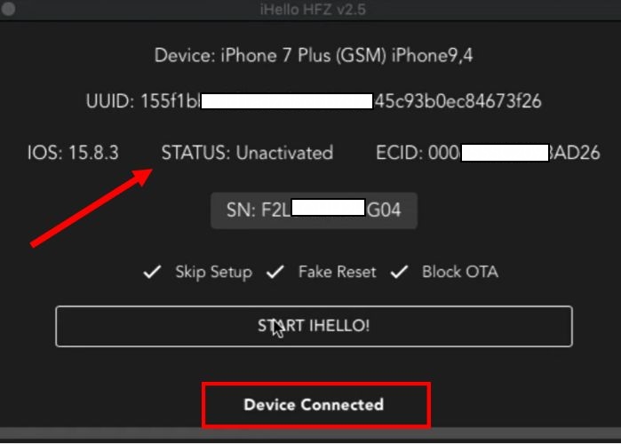 以下是使用 iHello HFZ 绕过 iCloud 激活锁的步骤: