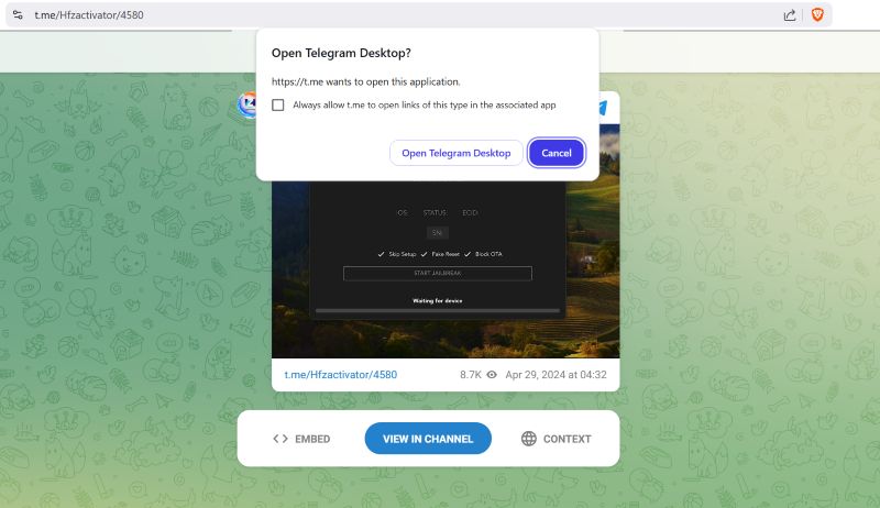 首先,前往开发者的官方 Telegram 帖子:t.me/Hfzactivator/4580。