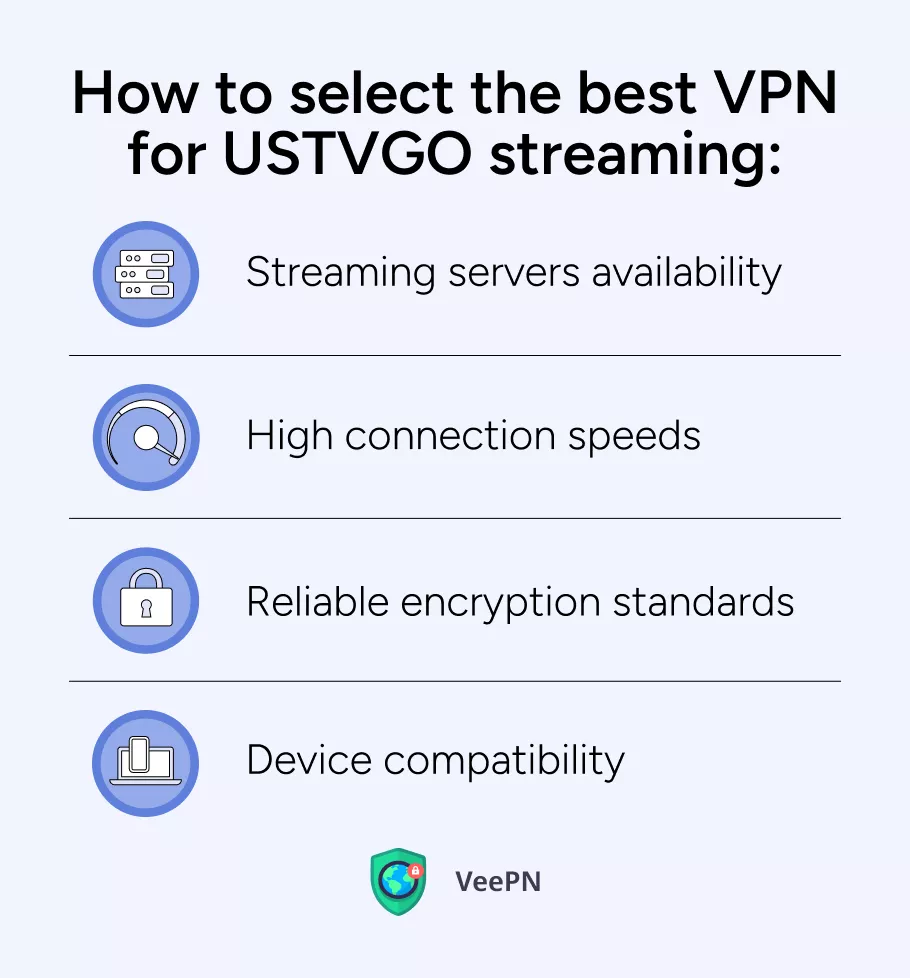 当您寻找最佳 VPN 来在线观看 USTVGO 替代品时,请注意以下功能和优点: