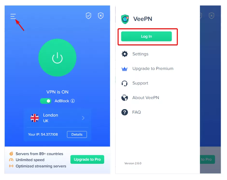 如果您已经有Active Veepn订阅,请转到设置在扩展程序中,单击登录以输入帐户信息: