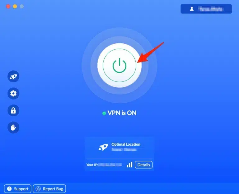- 打开你的VPN。单击主屏幕上的“连接”。这样,您将更改您的 IP 地址并保护您的交易活动。