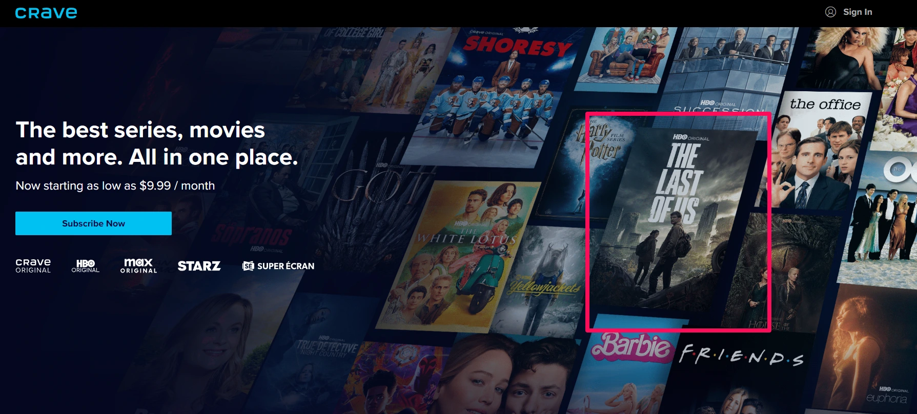 我们名单上的下一个是 Crave,这是一项流媒体服务,因其庞大的节目和电影库而在加拿大观众中越来越受欢迎。它实际上结合了 HBO 和 Starz(美国优质有线和卫星电视服务)的内容,因此您也可以在这里找到《最后生还者》。