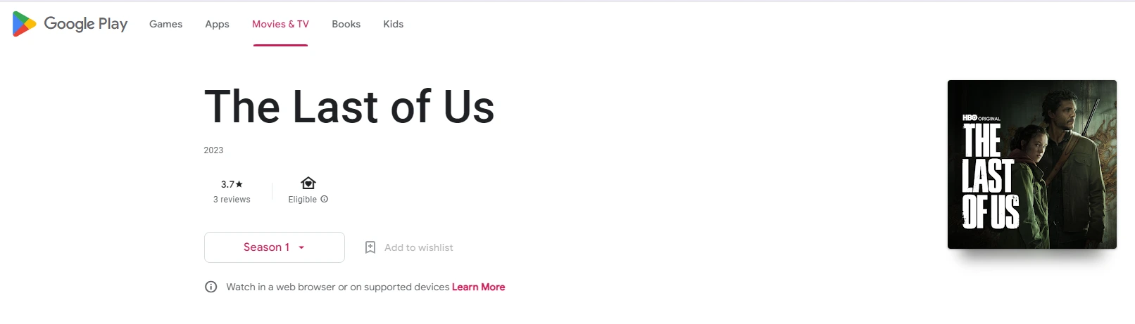 最后但并非最不重要的一点是,我们有 Google Play TV。这是加拿大观众观看《最后生还者》时可以探索的另一个选择。