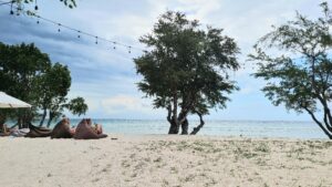 当你沿着环绕热带天堂吉利特拉旺安的 6.6 公里环路行走时,有时会感觉这个岛就像是加勒比海盗中的岛屿,海盗换成了背包客,但 5 分钟后你会在度假村前的海滩上看到免费的电影《海滩》放映,5 分钟后你会看到火山背景、懒人沙发和 Lofi DJ 的梦幻日落美景,然后走过一片美丽而空旷的白色沙滩30分钟。那就是吉利特拉旺安。