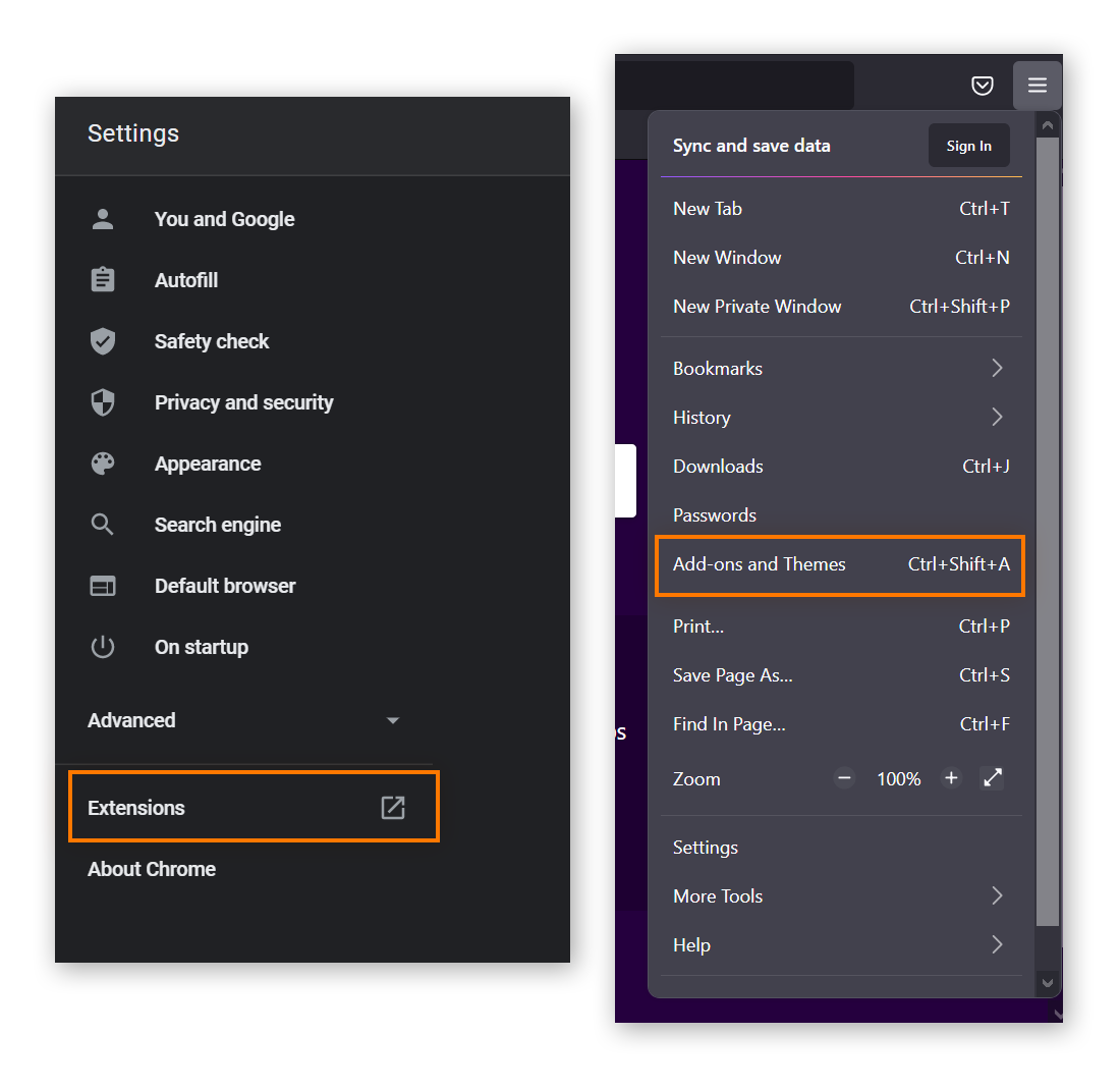 在 Google Chrome 中查找扩展程序或在 Firefox 中查找附加组件。 -