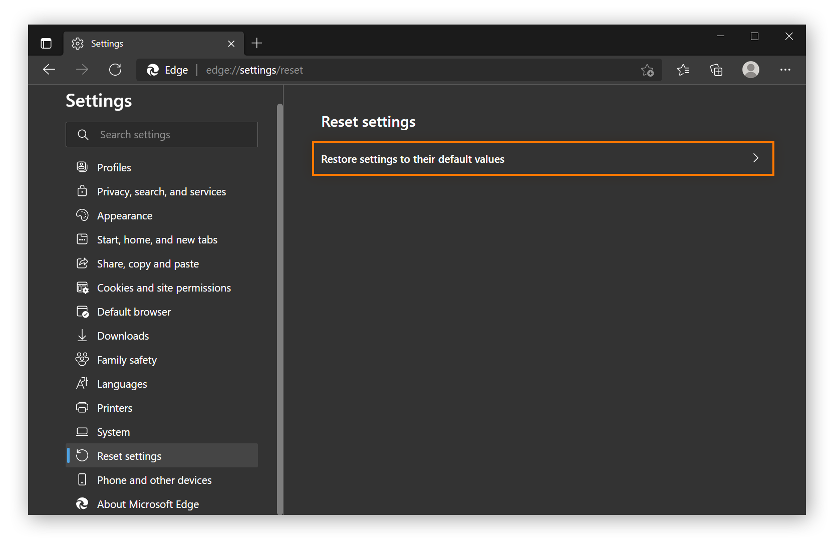 以下是如何将 Microsoft Edge 重置回出厂默认设置。