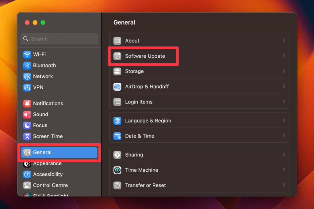 - 单击苹果标志再次,选择系统设置,然后单击软件更新。