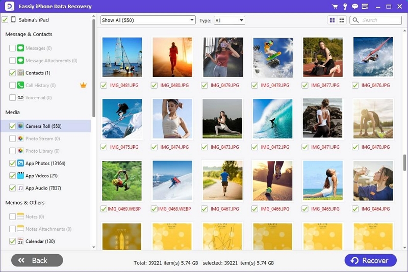步骤3:Eassiy iPhone Data Recovery 对可用的备份文件执行深入搜索。然后您可以查看恢复的备份文件。
