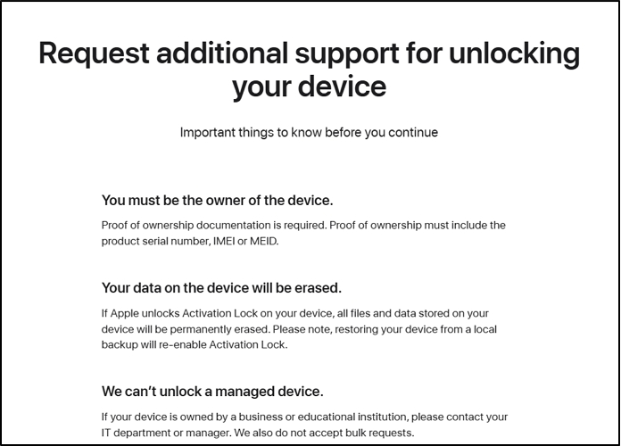 选项 4:使用在线请求在没有 Apple ID 的情况下删除 iPad 上的激活锁