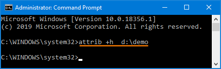 该命令将分配“隐”属性到您的目标文件夹或文件,并使其从文件资源管理器视图中消失。